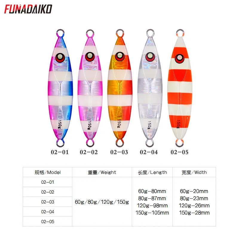 BEST SELLER FUNADAIKO Slow jig lure salewater fishing jigging lure boat fish luminous glow Artificial matel lur