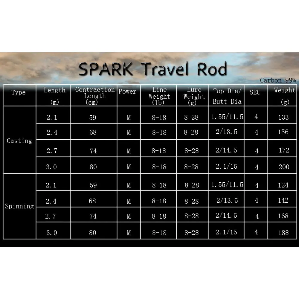 TOP JOHNCOO SPARK Fast Action Travel Fishing Rod 2.1m 2.4m 2.7m 3.0m M Power Lure Rod 4 Section Carbon