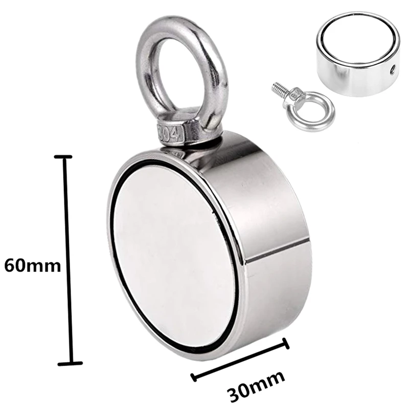 TOP!-D60Mm Salvage Neodymium Magnet Super Powerful Hole Circular Ring Hook 350Kg Fishing Permanent