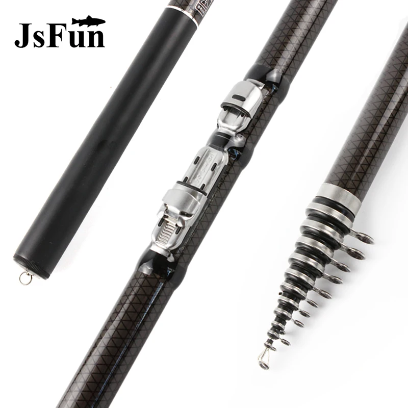 Best Quality JSFUN High Carbon Telescopic Fishing Rod 2.7/3.6/4.5/5.4/6.3m Spinning Fishing Rod M Power Rock Rod