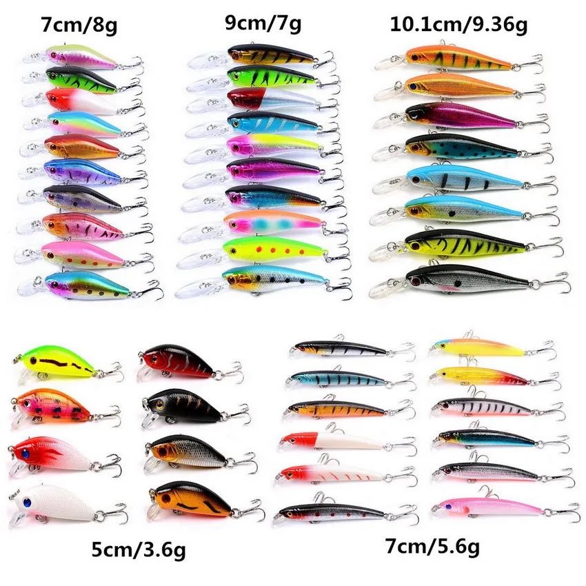 Review Top Mixed Fishing Lure Kits Crankbait Minnow Popper VIB Soft Lure Bass Baits Wobblers Set Lifelike Fake