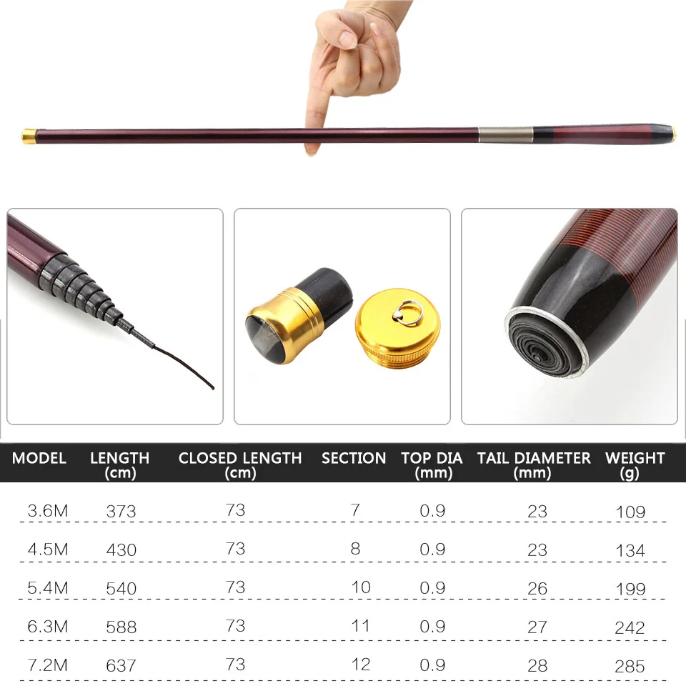 BEST SELLER NEW 3.6-7.2M Carbon Telescopic Carp Fishing Rod Fish Hand Fishing Rod Ultra Lightweight Carbon Fibe