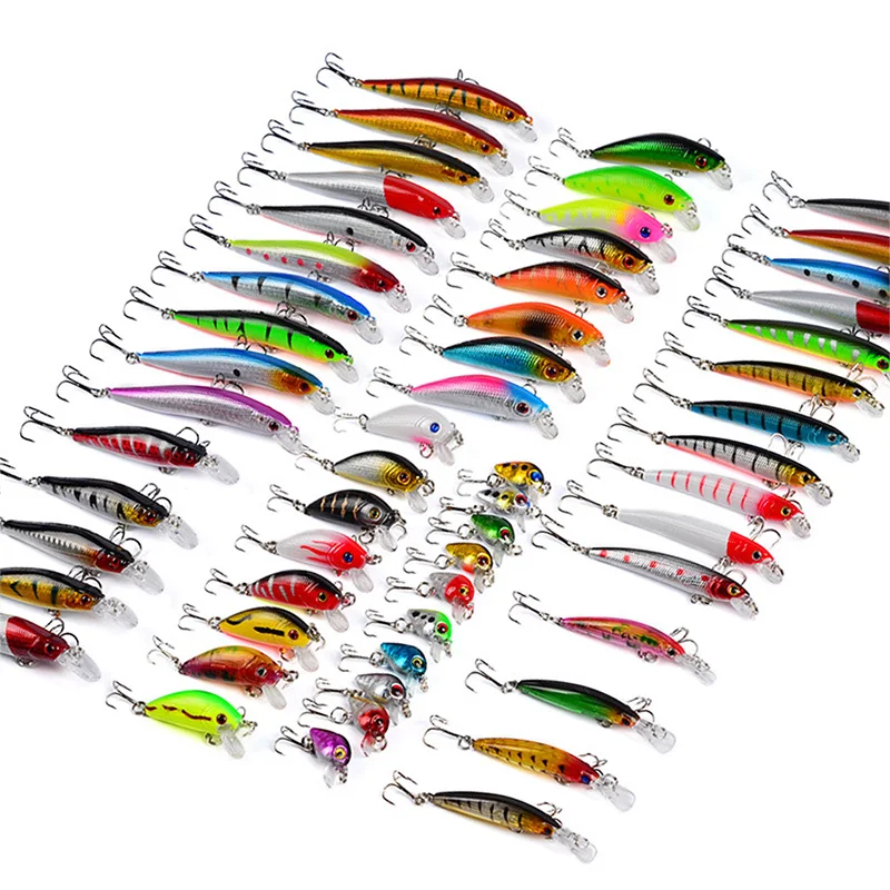 ORIGINAL 56pcs/lot Mixed Fishing Lure Kit Set Minnow Trolling Artificial Bait Lifelike Wobbler Carp Fishing