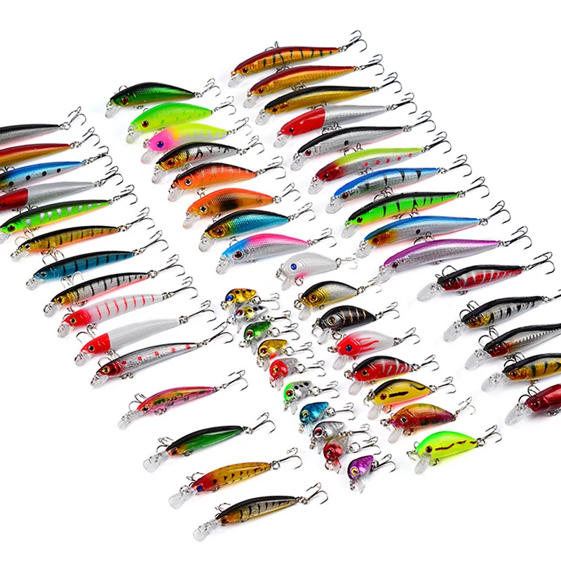 56pcs/lot Mixed Fishing Lure Kit Set Minnow Trolling Artificial Bait Lifelike Wobbler Carp Fishing